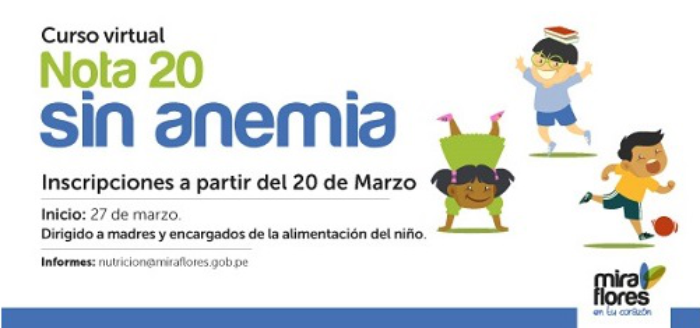 El Curso de Capacitación en Nutrición: “NOTA 20 SIN ANEMIA” es un curso virtual que brinda información a madres, padres y/o encargados de la alimentación de la niña o el niño sobre cómo prevenir la anemia en los niños.